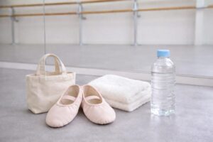 バレエは見た目以上に体を動かします。レッスン中は適度な水分補給が大切です。冷たい飲み物よりも常温の水の方が体への負担が少なく、動きながらでも飲みやすいと感じる方が多いです。小さめのボトル1本あれば十分です。